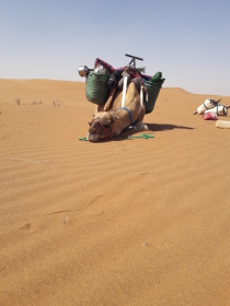 Nous commencerons alors notre itinéraire chamelière. Le campement sera chargé sur les dromadaires, ainsi que tout le néscessaire pour notre aventure ( Nourriture, eau, tentes, nos bagages).